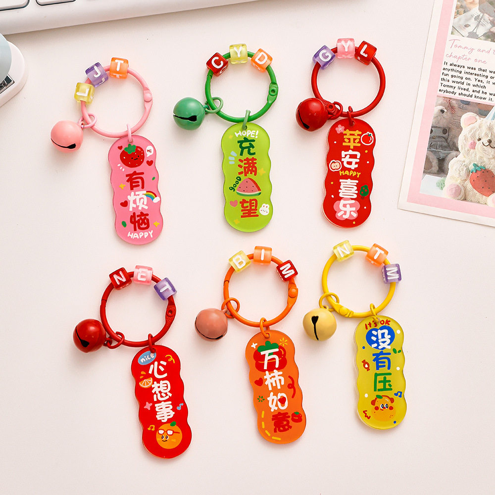 创意水果文字钥匙扣可爱亚克力学生书包挂件小礼品奖励铃铛钥匙圈