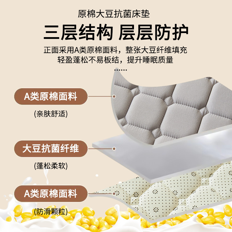 新款A类大豆原棉床垫软垫薄款防滑垫家用褥子床褥垫被铺单人护垫