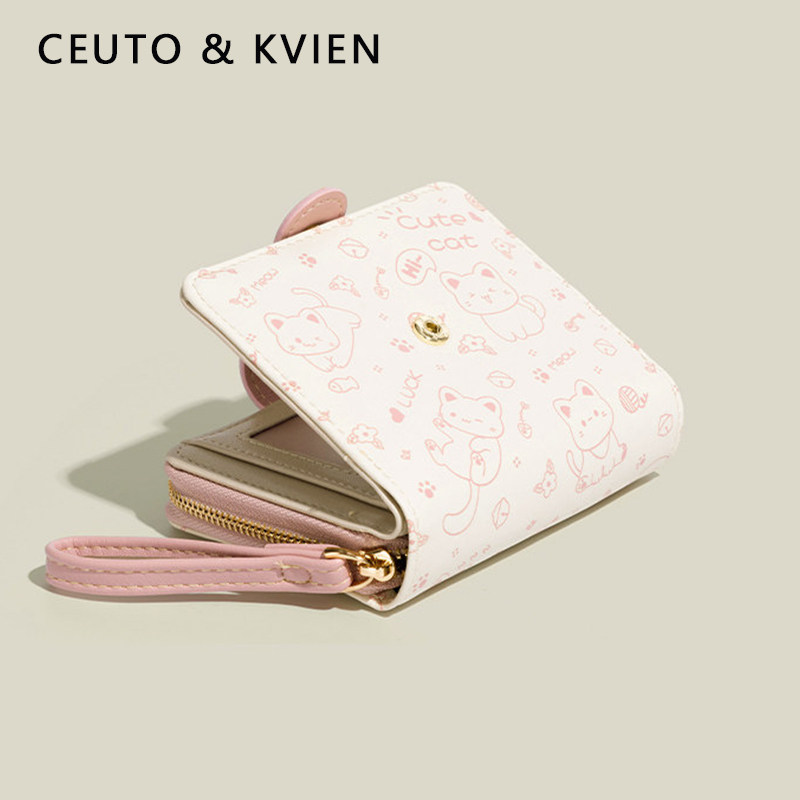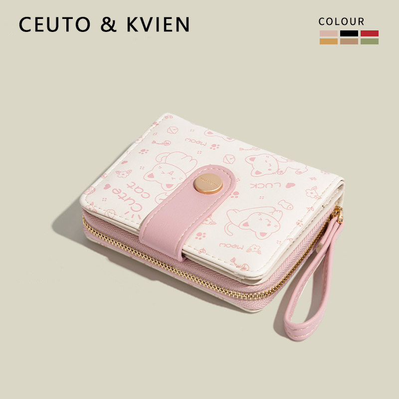 日系可爱学生卡通一体多功能零钱包新款折叠短款女生卡包证件现金