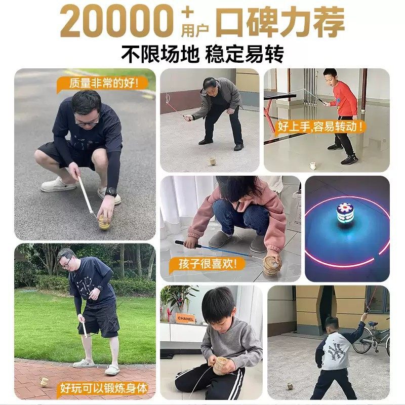 实木陀螺冰尜儿童玩具成人冰嘎男孩木头抽打专用老式带鞭绳子木质