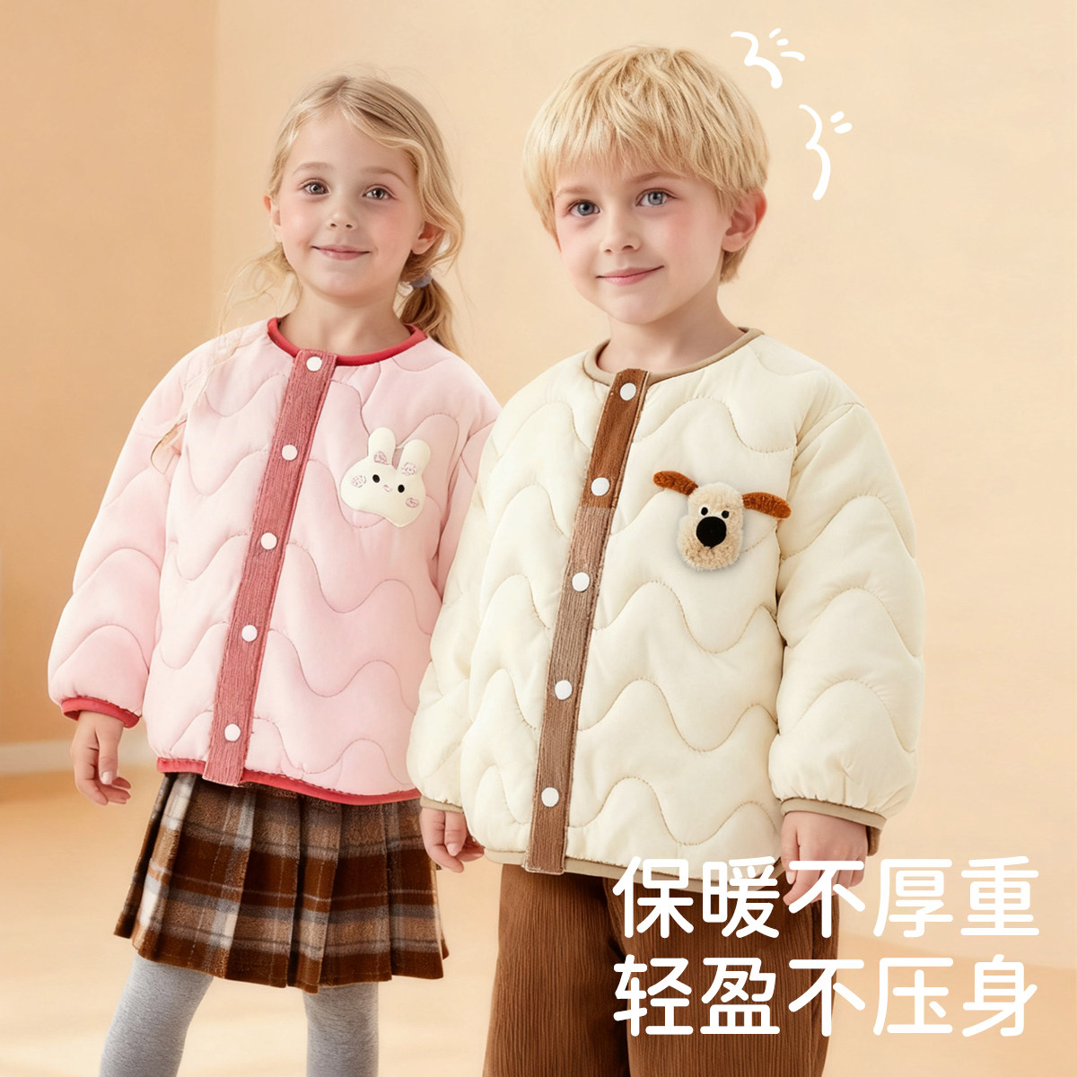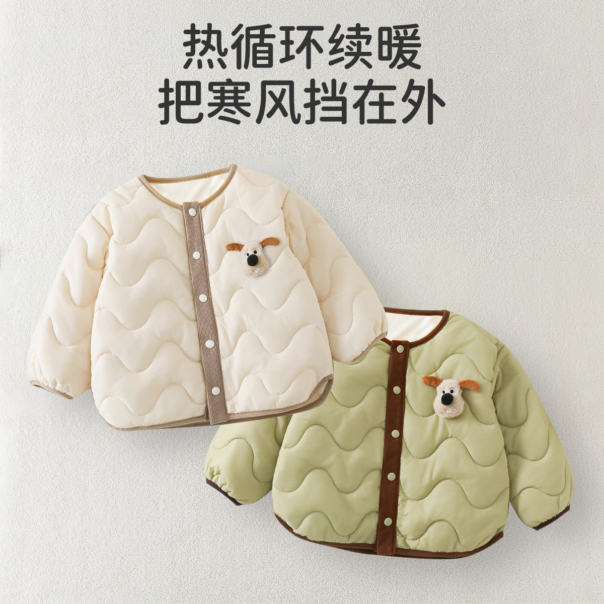 婧麒宝宝夹棉外套秋冬季儿童保暖加绒上衣婴幼儿内胆外出棉服冬装