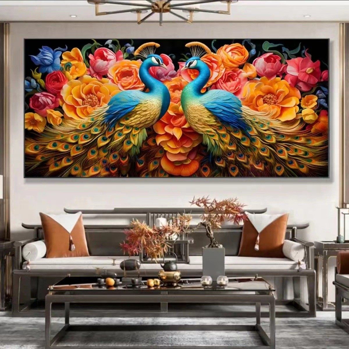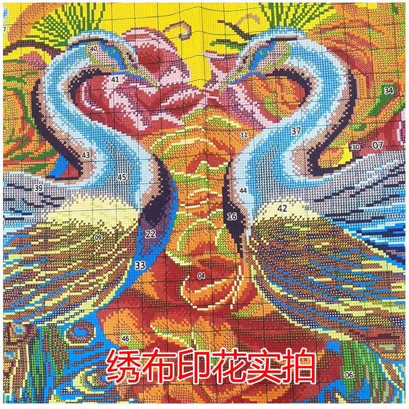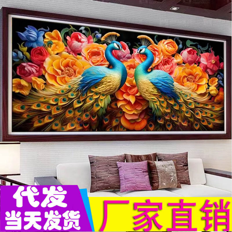 荣华富贵十字绣风景新款线绣客厅满绣大幅孔雀十字绣批发