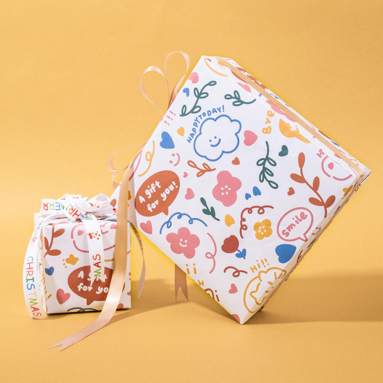 你好小朋友可爱手绘卡通礼物包装纸大尺寸新年情人节儿童生日伴手礼盒礼品纸高级感花束打包丝带DIY包书皮纸