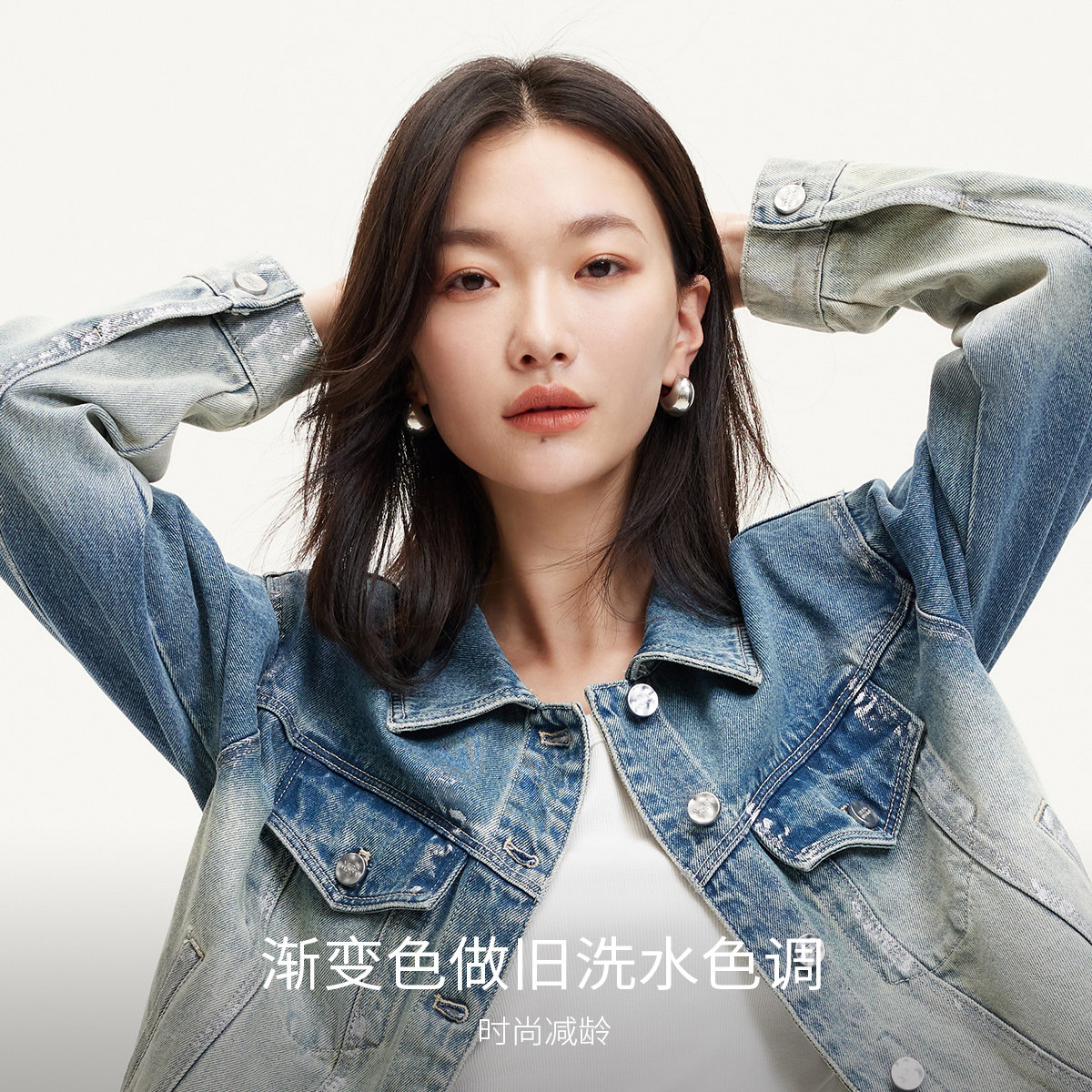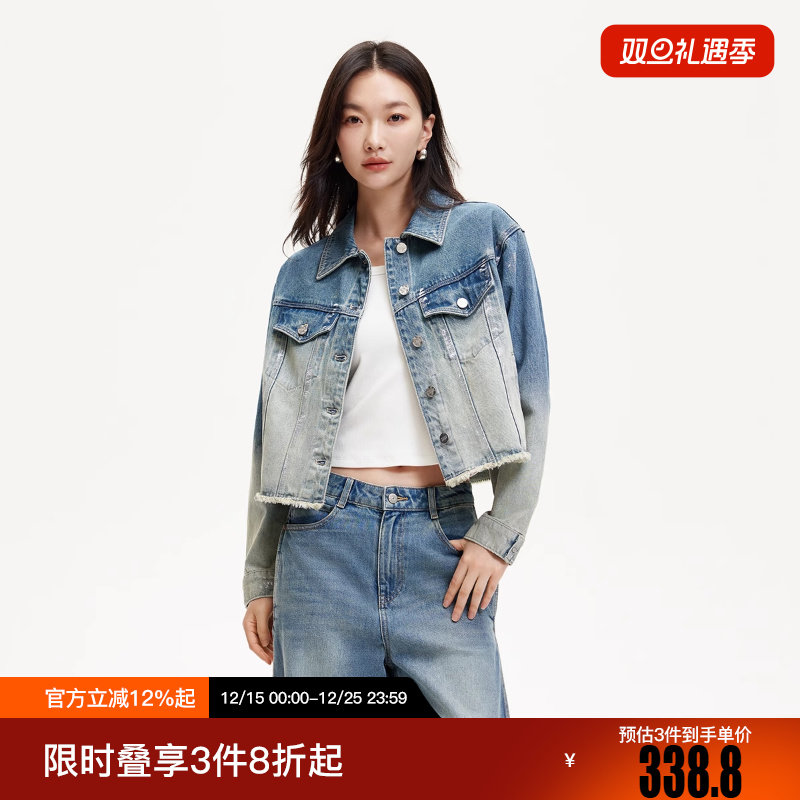 绫致Vero Moda短外套2025冬新款短款渐变水洗牛仔高街潮流