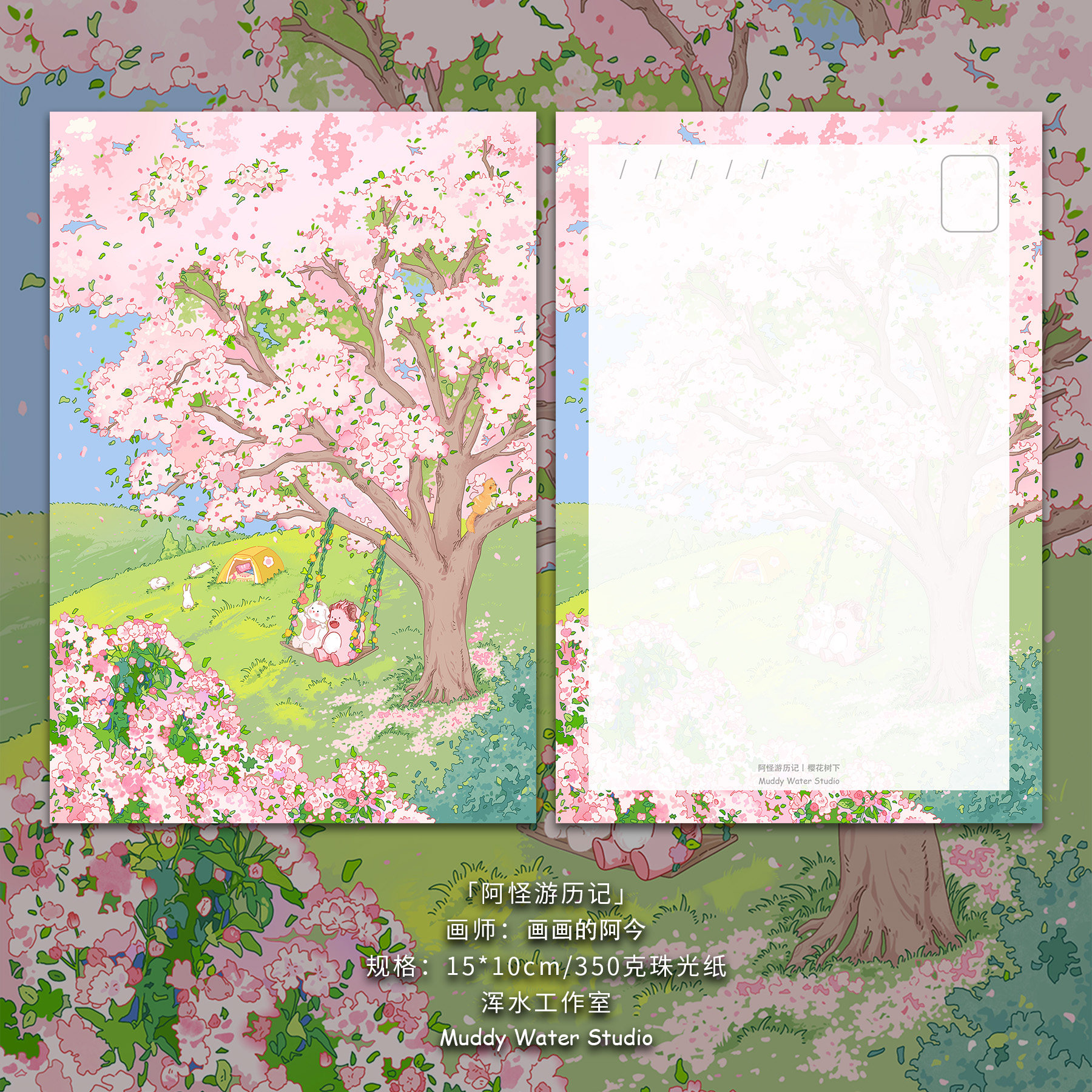 「阿怪游历记」原创插画兔兔阿怪明信片小众手绘可爱动漫小卡贺卡