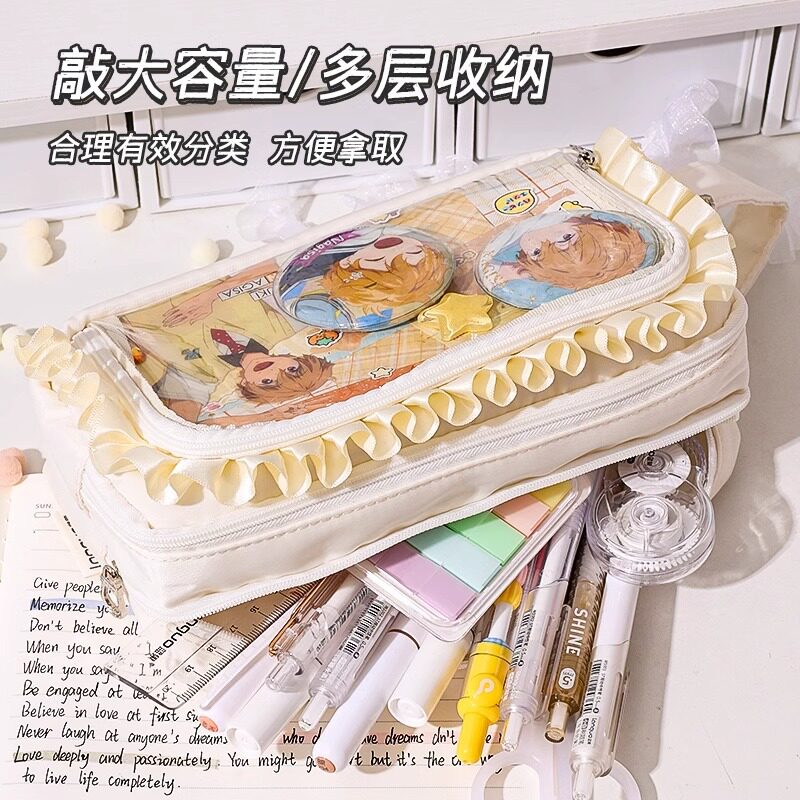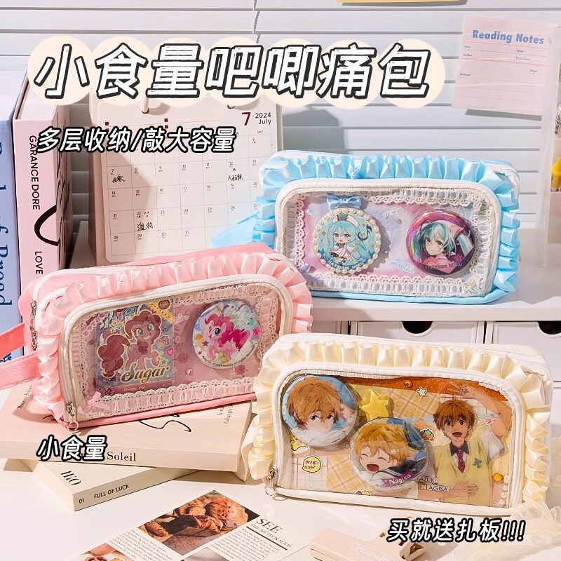 蓝果新款大肠痛笔袋蕾丝小食量痛包二次元谷子收纳大容量多层笔袋