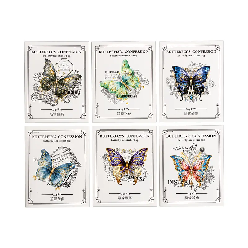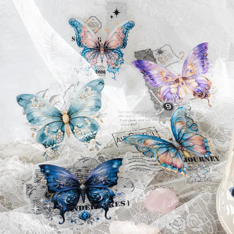 番茄酱PET贴纸包 蝴蝶的自白系列 蕾丝蝴蝶手帐拼贴装饰素材