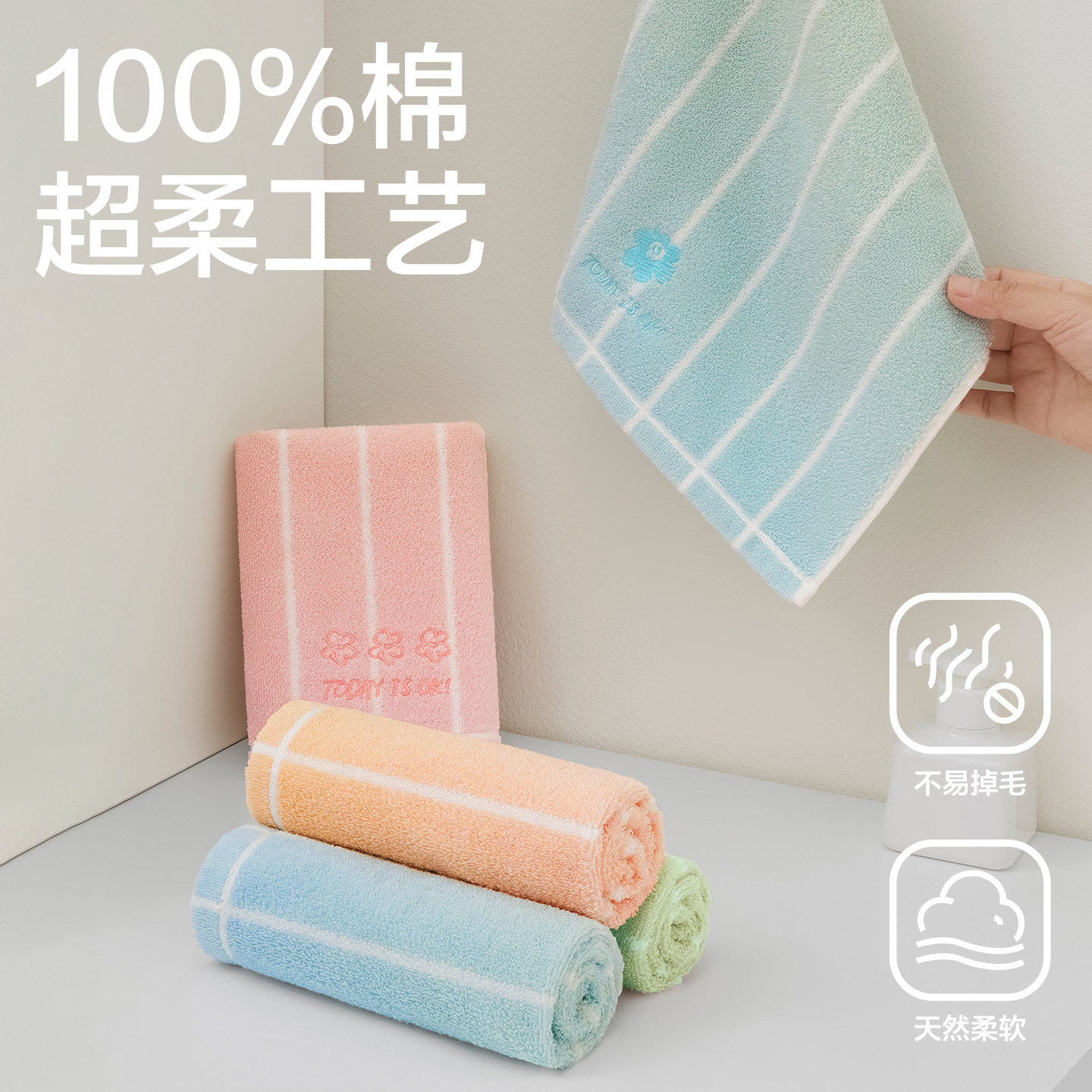三利洗脸毛巾纯棉擦手巾卫生间厨房洗手布吸水儿童全棉小方巾帕
