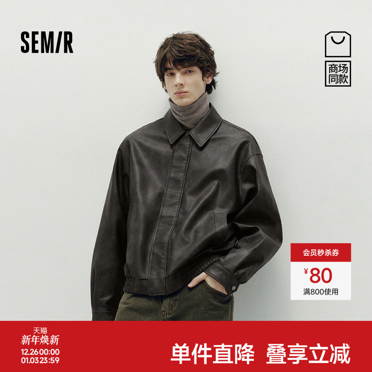 [商场同款]森马外套男哑光仿皮衣短款2025秋季新款机车夹克潮宽松