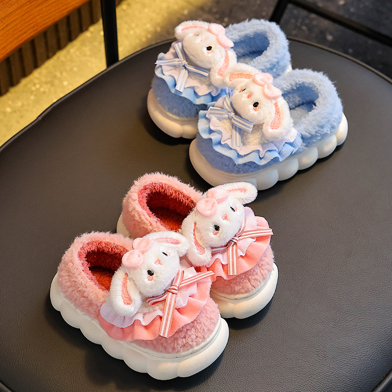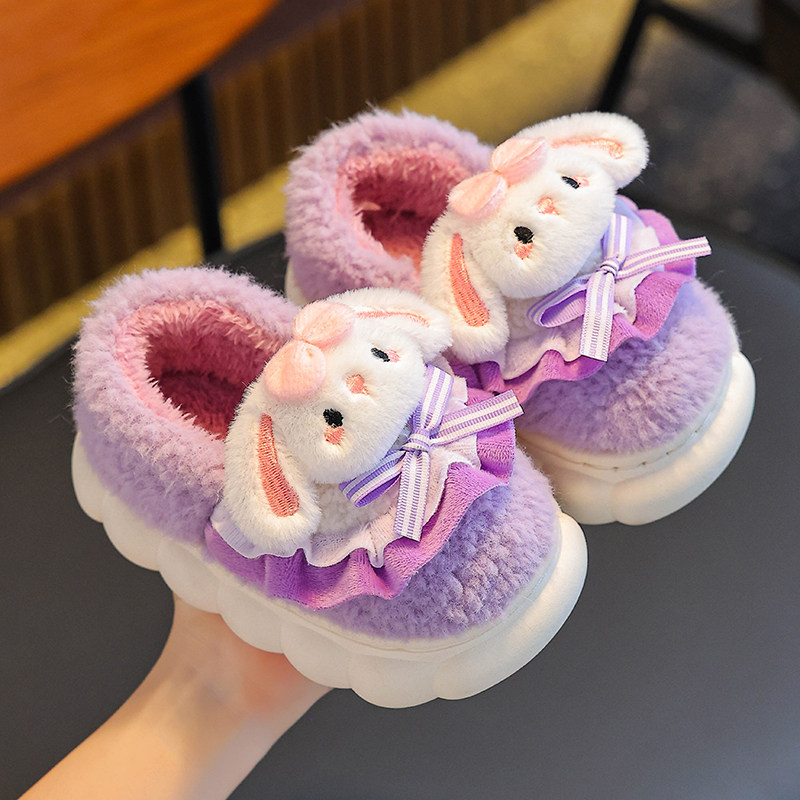 冬季儿童棉拖鞋包跟女童室内保暖可爱宝宝亲子毛毛拖鞋紫色卡通