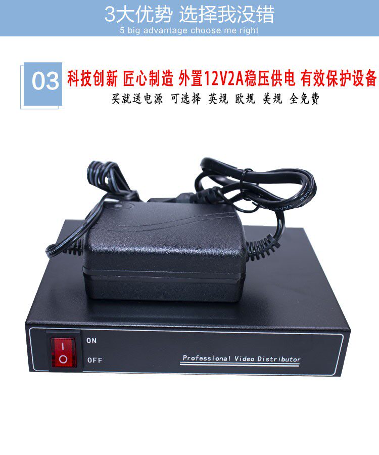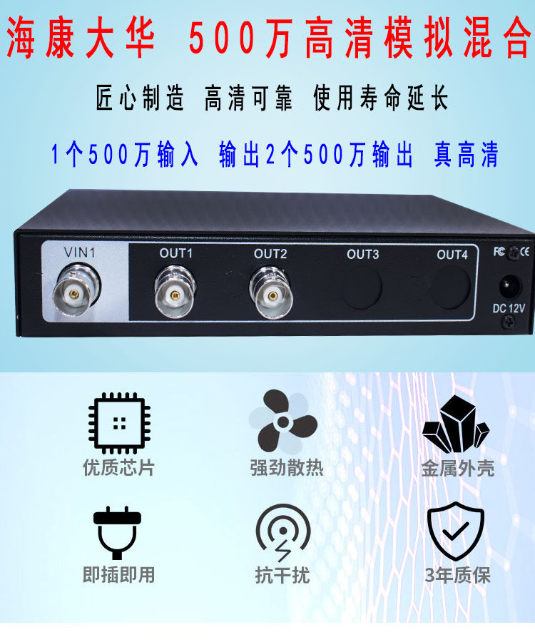 监控摄像机1进2出同轴高清视频分配器BNC分支器AV分屏器AHDCVITVI
