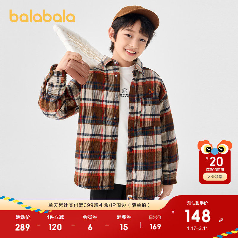 巴拉巴拉童装儿童棉服男童衬衫加厚冬装牛仔连帽衬衣棉袄大童保暖