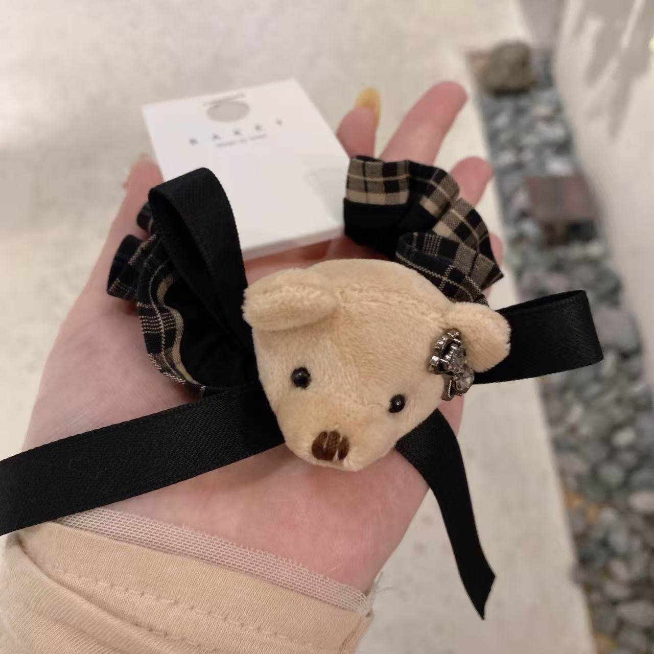 9.30韩国东大门baket发饰小熊格子复古布艺蝴蝶结发绳发圈