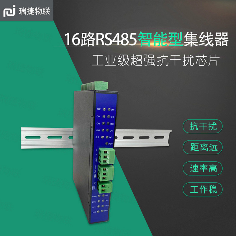 瑞捷物联RS485集线器16路星型线路hub一分16口工业级光电隔离通信扩展抗干扰分配器