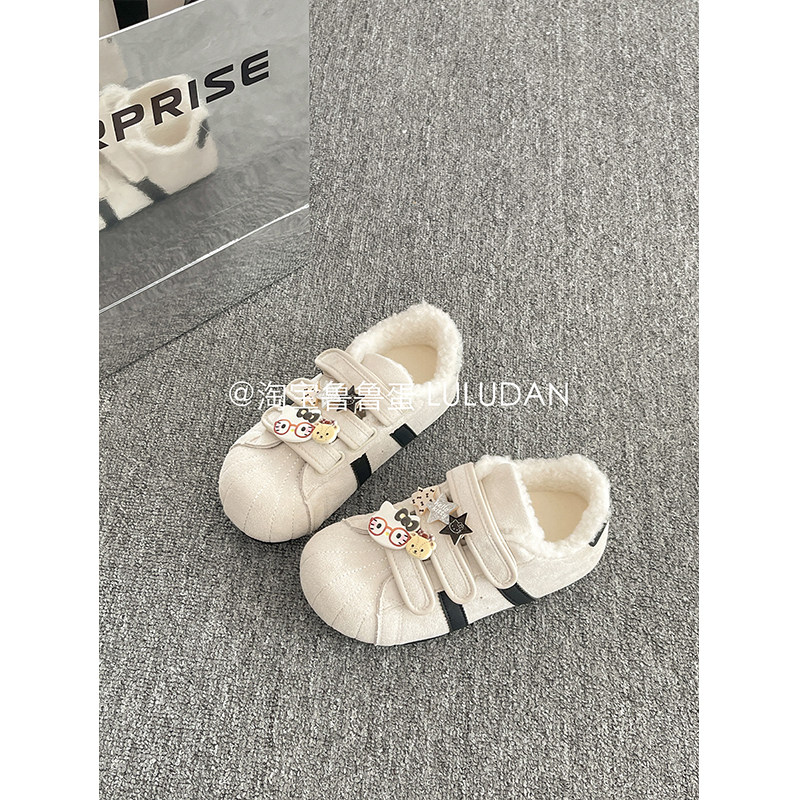 鲁鲁蛋百搭厚底小白鞋2025新款秋冬女鞋勃肯板鞋德训鞋魔术贴圆头