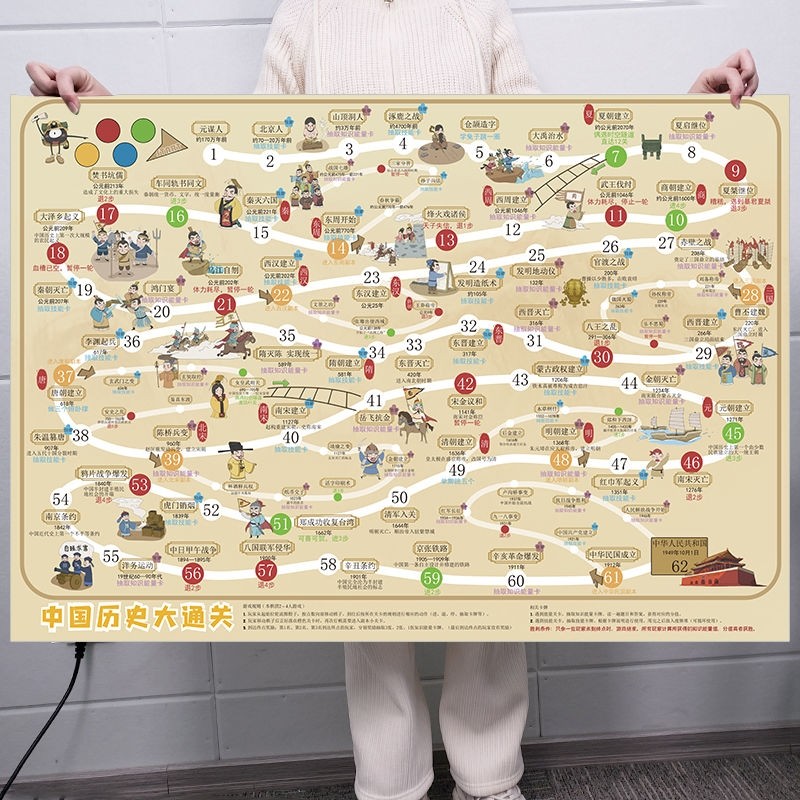3-12岁中国历史大通关游中国地理游戏棋飞行棋儿童亲子桌游记忆力专注力逻辑思维训练地图互动计算