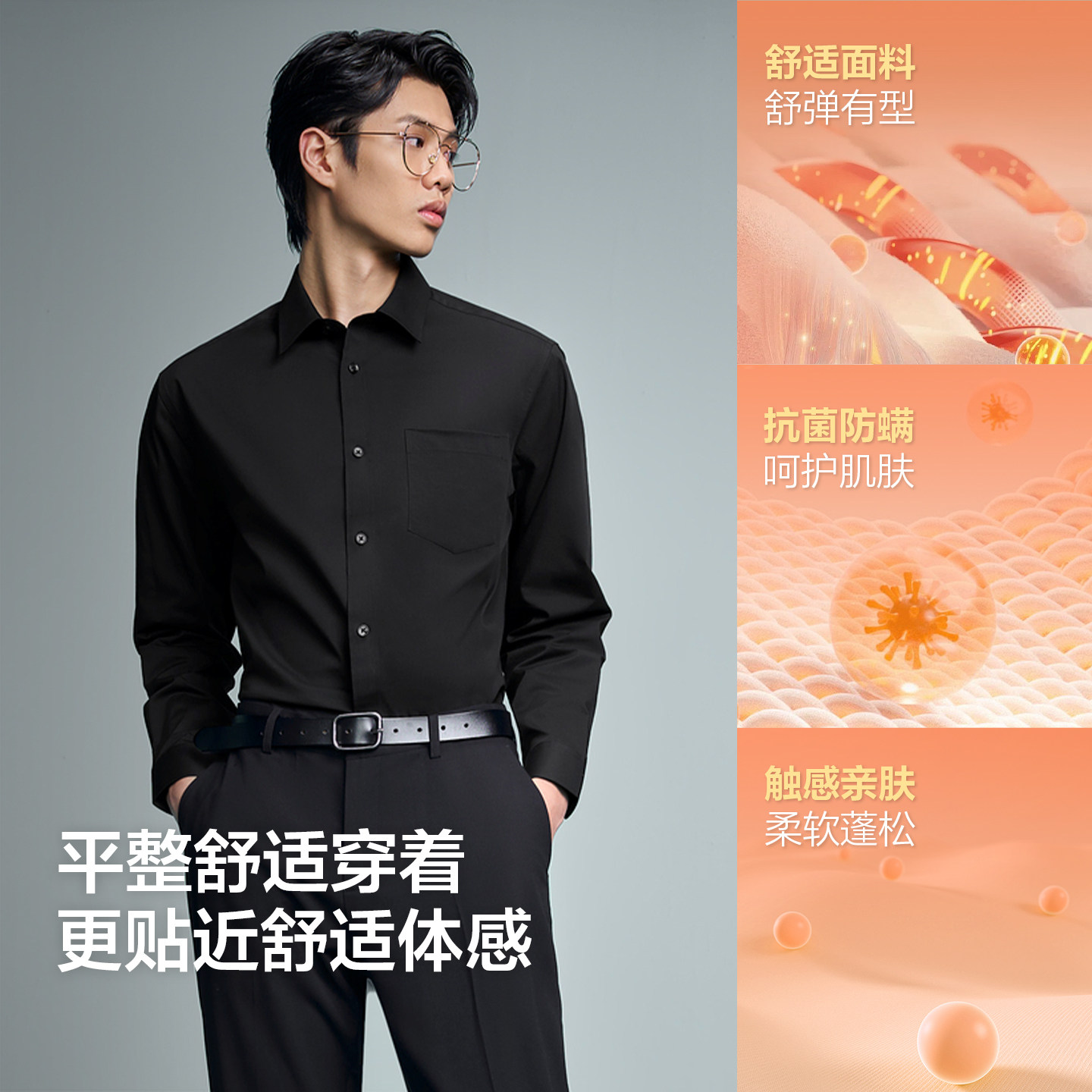 【清仓】杉杉品牌男士长袖衬衫纯色2025春季新款休闲免烫纯棉衬衣