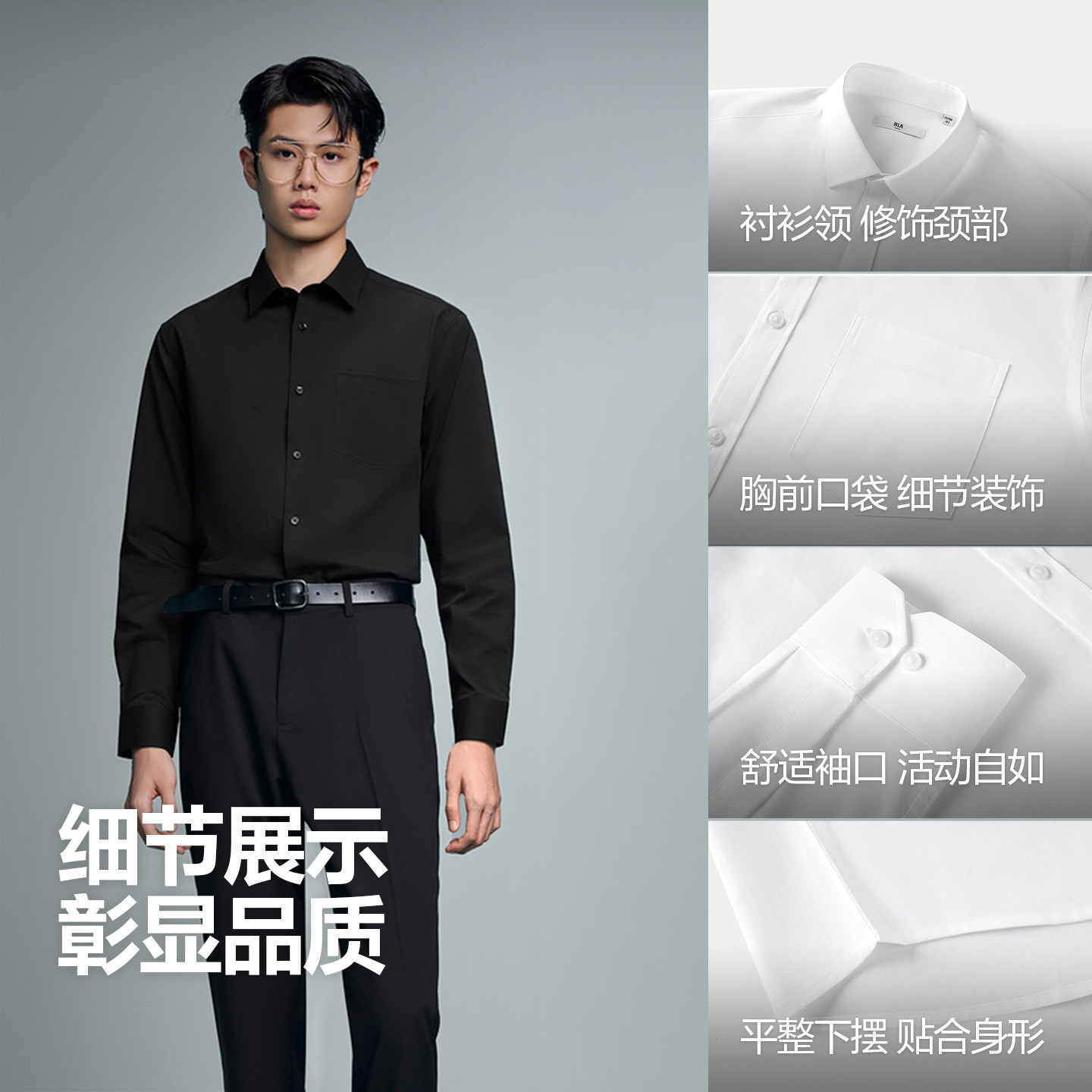 【商务衫及系列】HLA海澜之家2025衬衫领黑色套装长袖正装寸衫男
