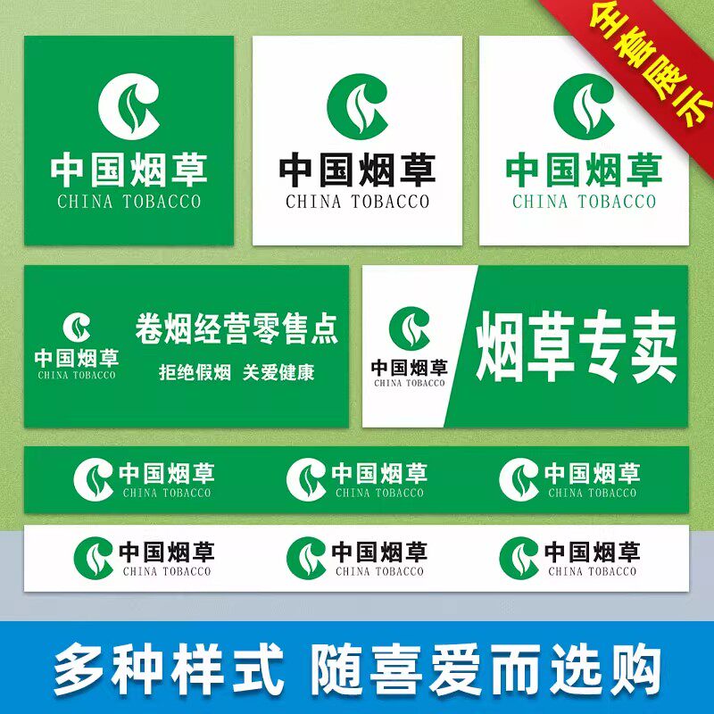 中国烟草标识贴纸超市柜台墙贴香烟广告纸标签烟草广告门贴烟酒超市便利店自粘贴文字标识贴纸设计定制