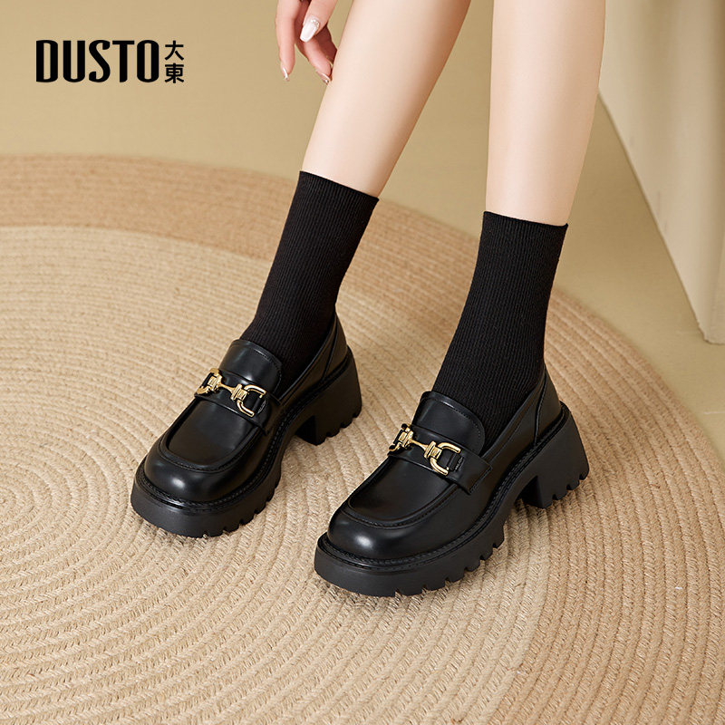 大东乐福鞋女鞋2025秋季新款时尚休闲粗跟高跟套脚圆头纯色Q0131