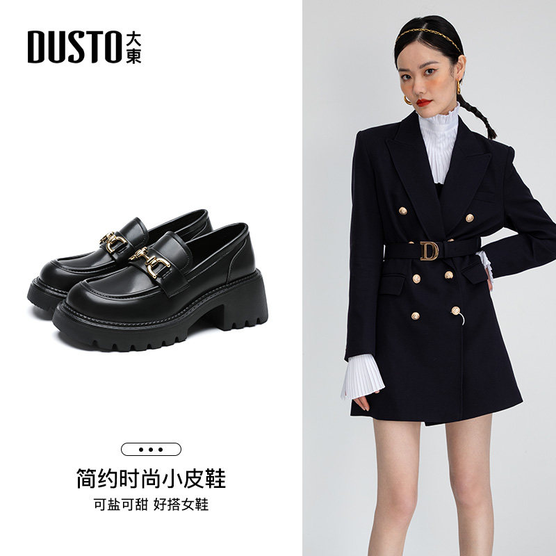 董洁同款真美诗自由之歌柔软水洗牛皮小皮鞋粗跟乐福鞋女男女同款
