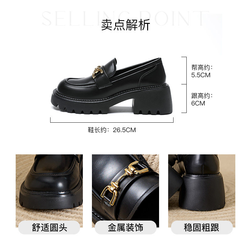 升级版~张元英同款miu风金币英伦学院粗跟高跟真皮乐福鞋女小皮鞋