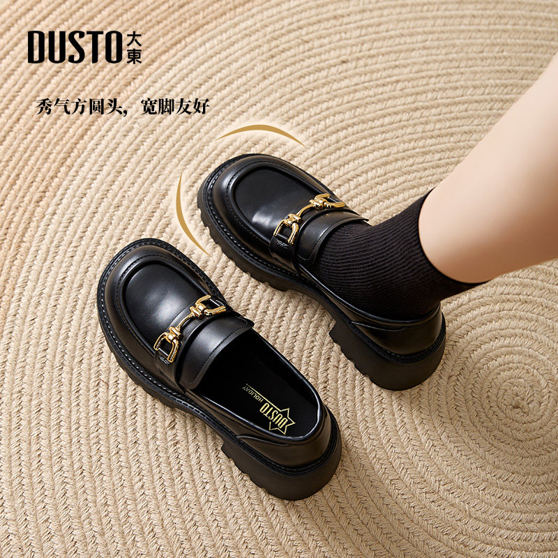 真皮~骄屿复古一脚蹬乐福鞋女厚底粗跟圆头单鞋百搭英伦风小皮鞋