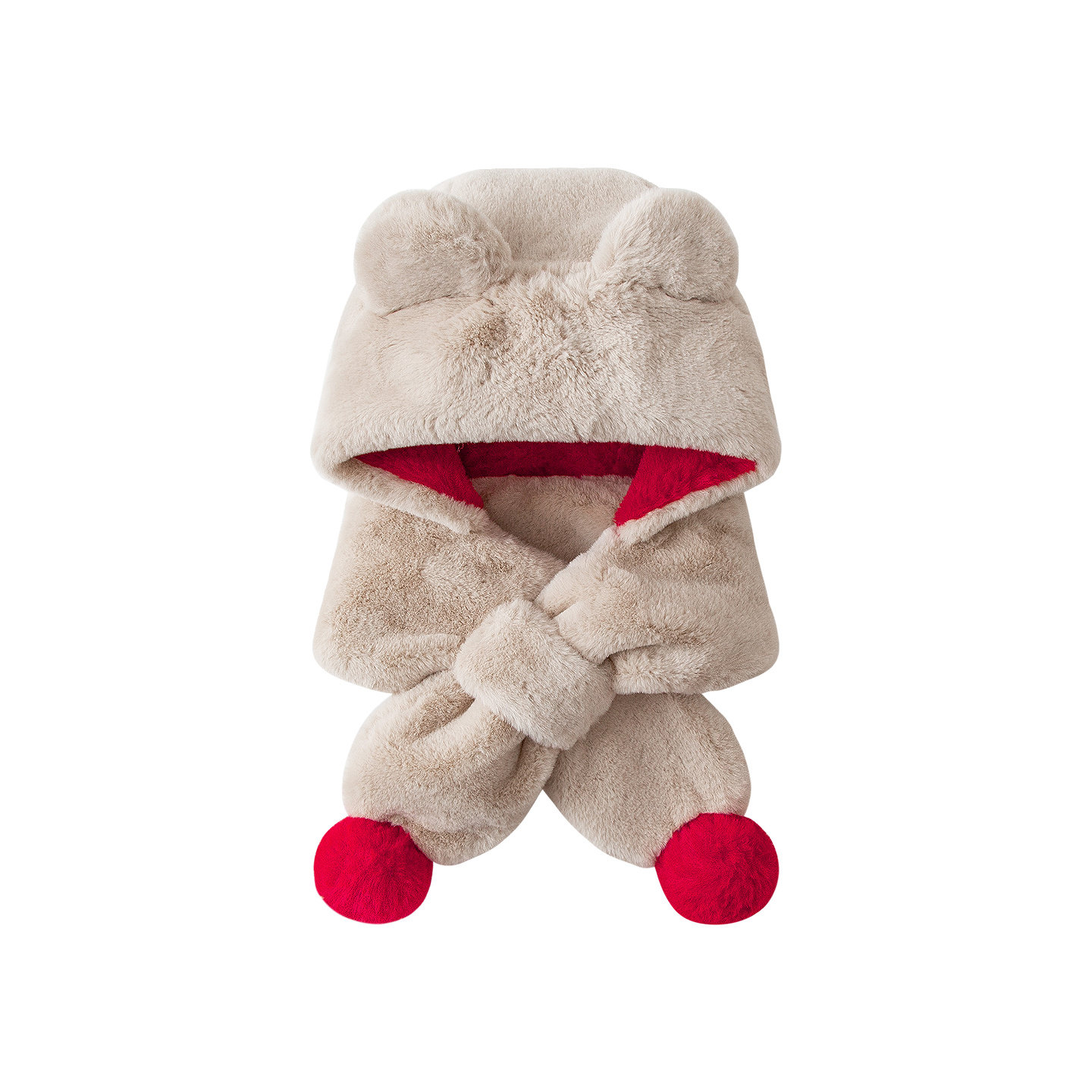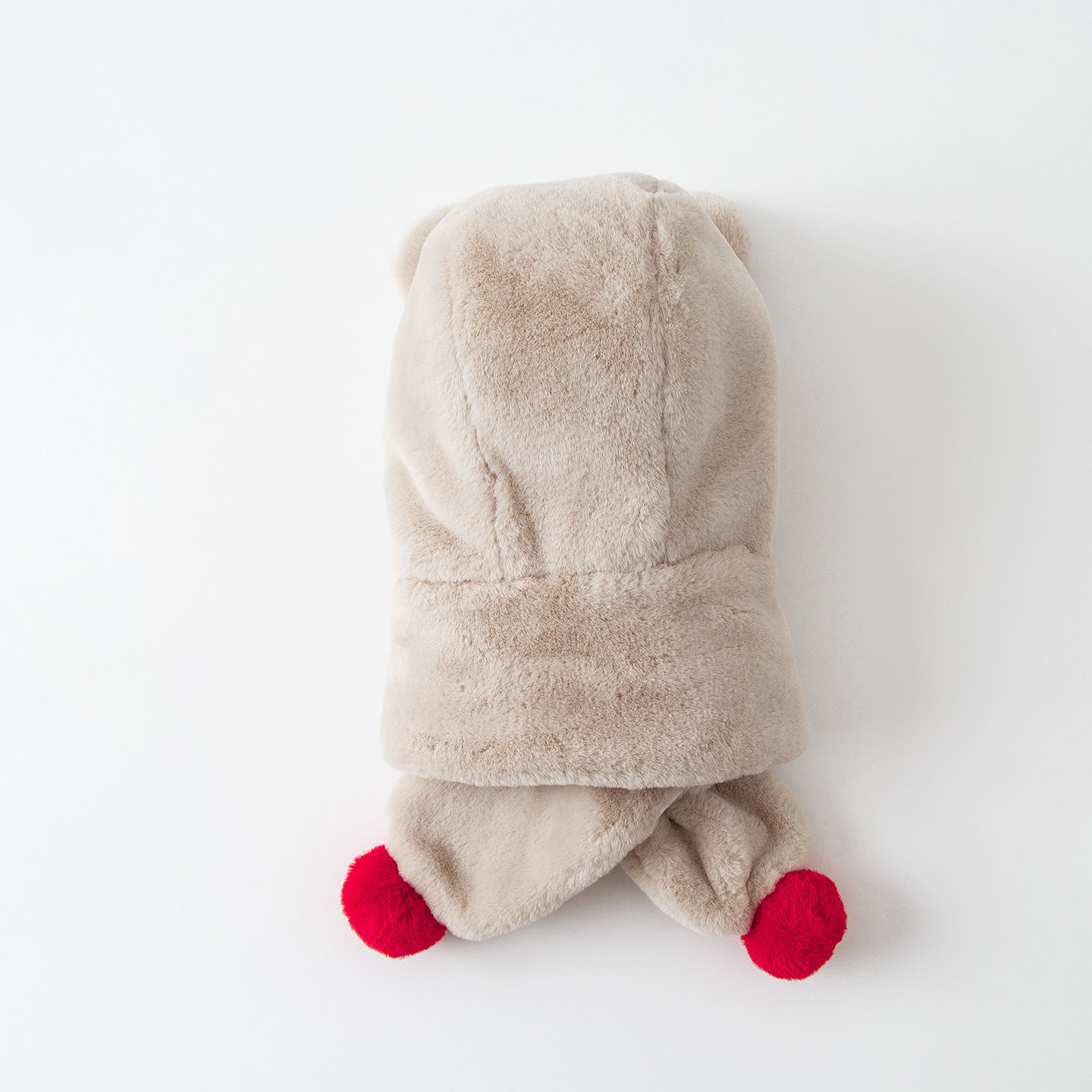 尼多熊婴儿帽子秋围脖一体宝宝毛绒帽防风护耳帽冬季保暖婴幼儿帽