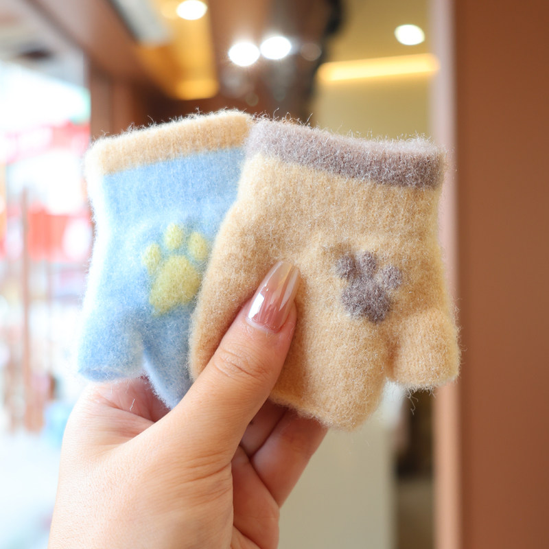 0-2岁婴儿儿童半指手套秋冬季可爱脚印宝宝男女童婴幼儿保暖手套