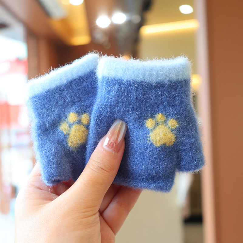 mikko联名可爱卡通猫咪毛绒手套女冬季翻盖半指触屏加厚骑行保暖
