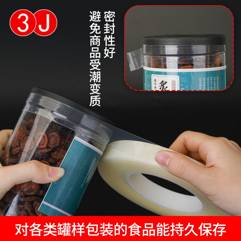 食品封口胶带透明无痕PE马口铁盒塑料盒饼干盒超市糖果燕窝礼品茶叶罐贴瓶口封边密封罐不残胶