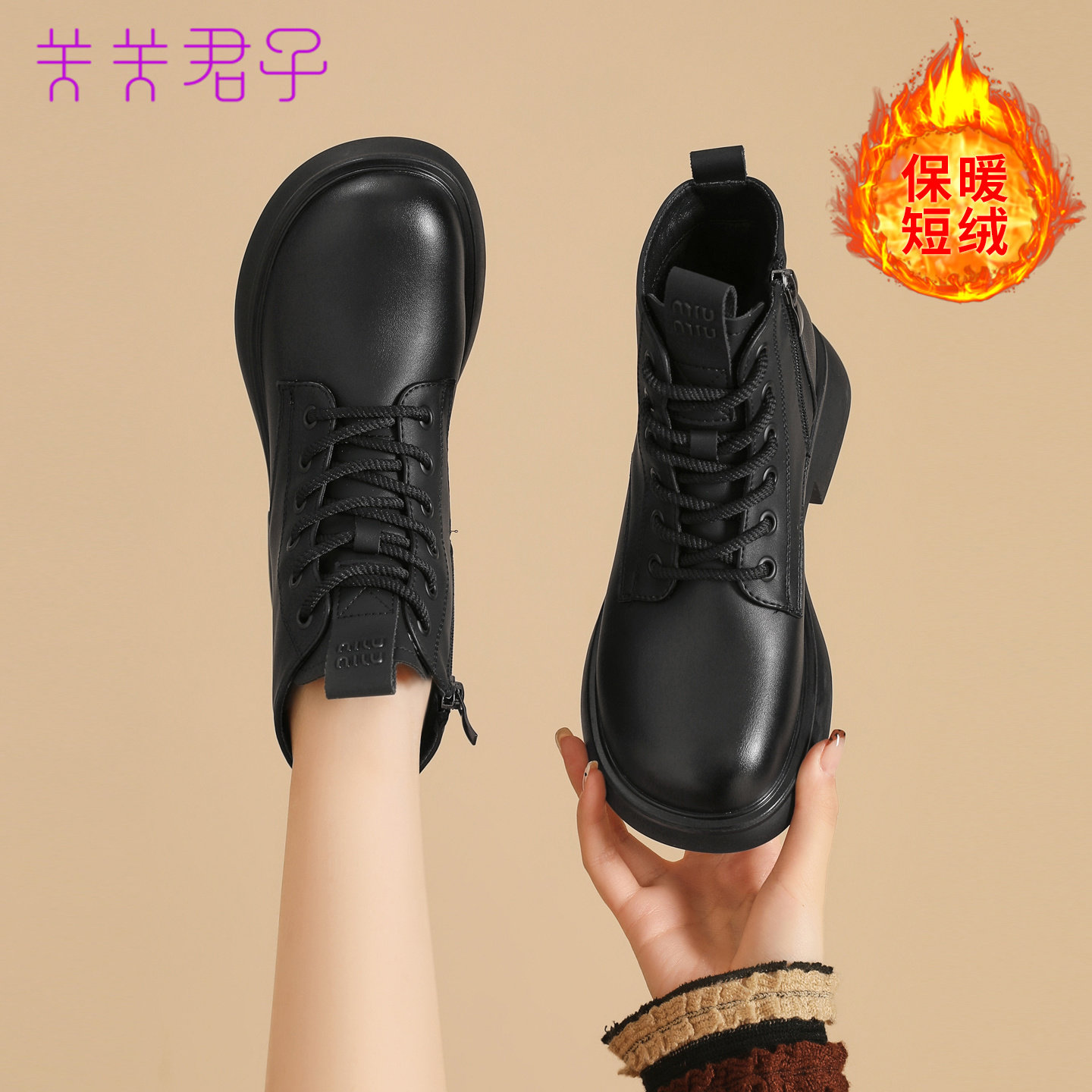 爆款加绒马丁靴女2025秋冬新款英伦风粗跟系带百搭显瘦复古短靴子