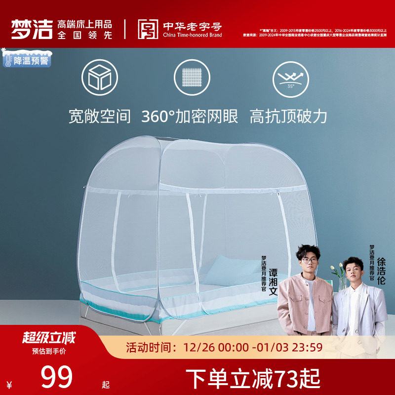 梦洁蚊帐蒙古包家用儿童免安装加厚加密防摔夏季女生宿舍蚊帐