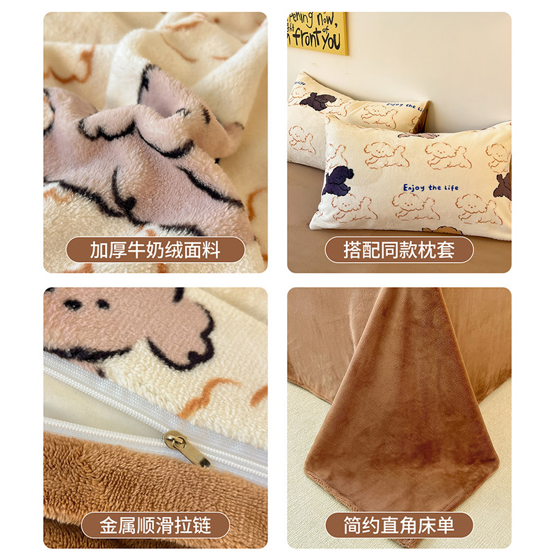 猫人牛奶绒床上四件套2025新款冬季加绒保暖珊瑚绒宿舍床品三件套