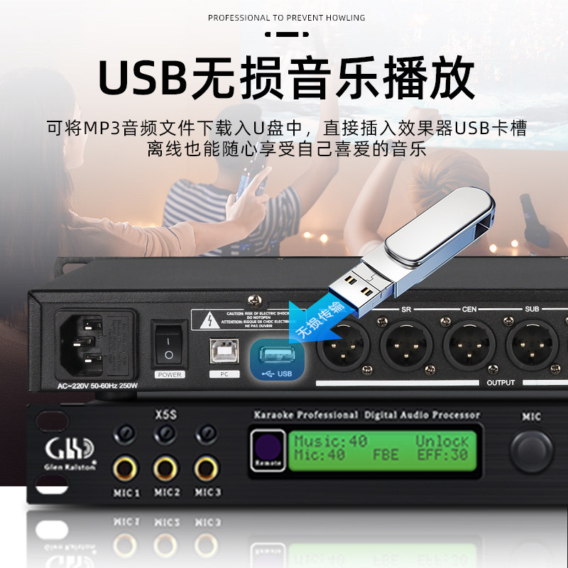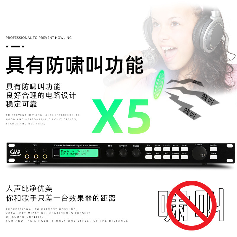 Glen Ralston/格伦士顿专业ktv前级效果器防啸叫混响卡拉ok家用