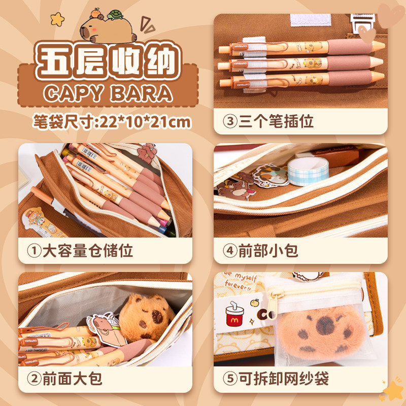 touchmark卡皮巴拉笔袋2025新款小学生女童高颜值大容量超火文具盒女孩款儿童超大铅笔盒套装文具袋男孩女生