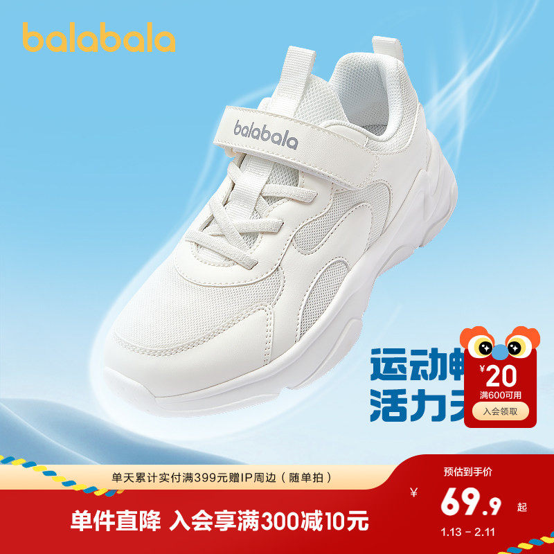 巴拉巴拉童鞋儿童运动鞋透气男童女童鞋子潮流秋小白鞋网鞋慢跑鞋