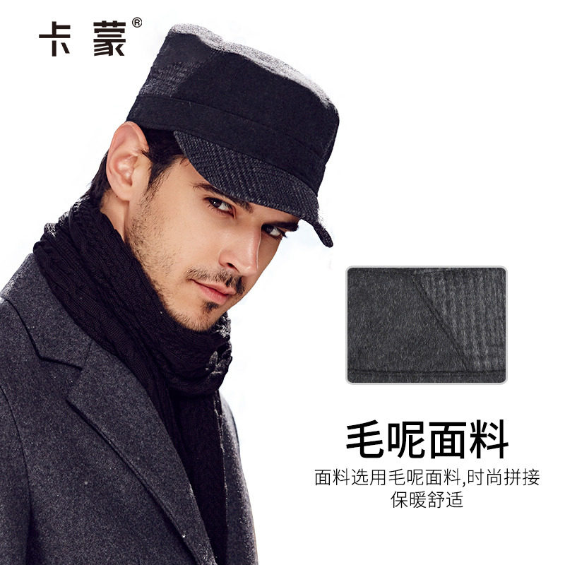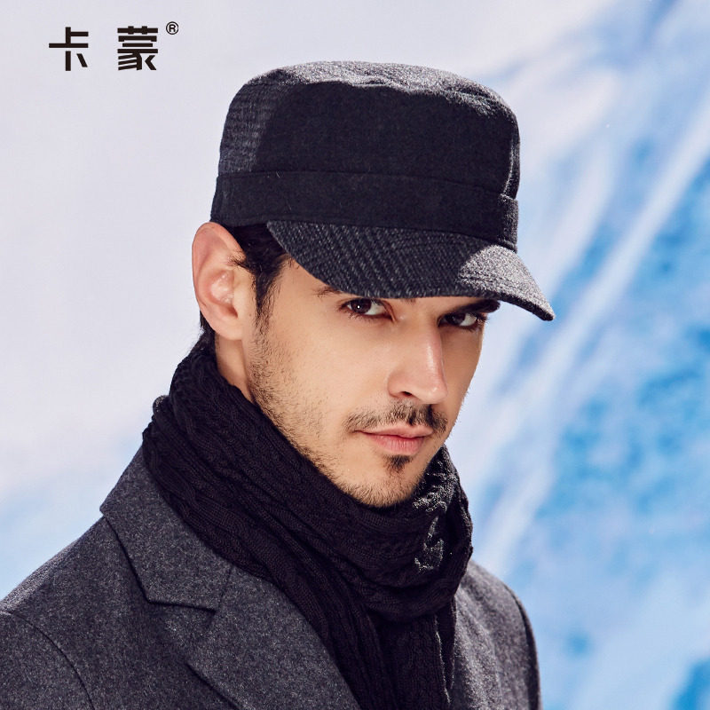 男士帽子冬季时尚户外鸭舌帽秋冬男帽韩版潮棒球帽平顶帽毛呢帽子