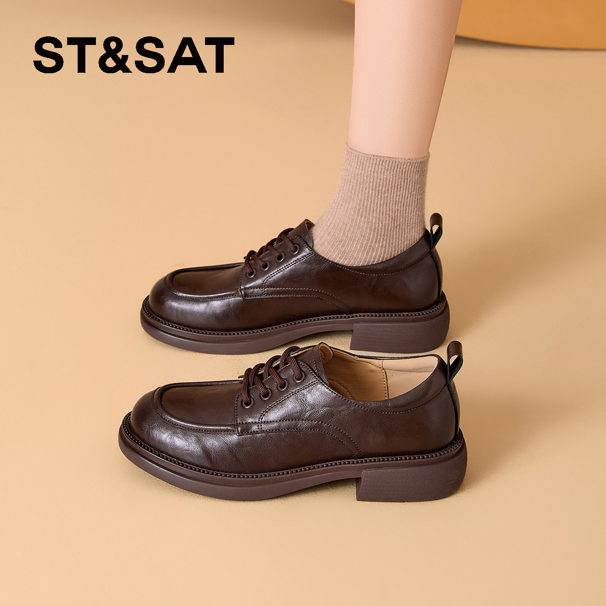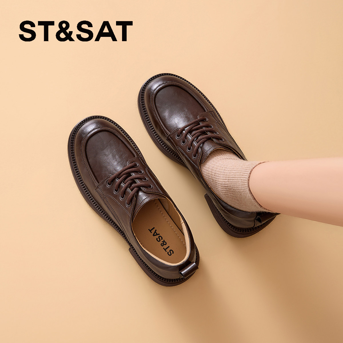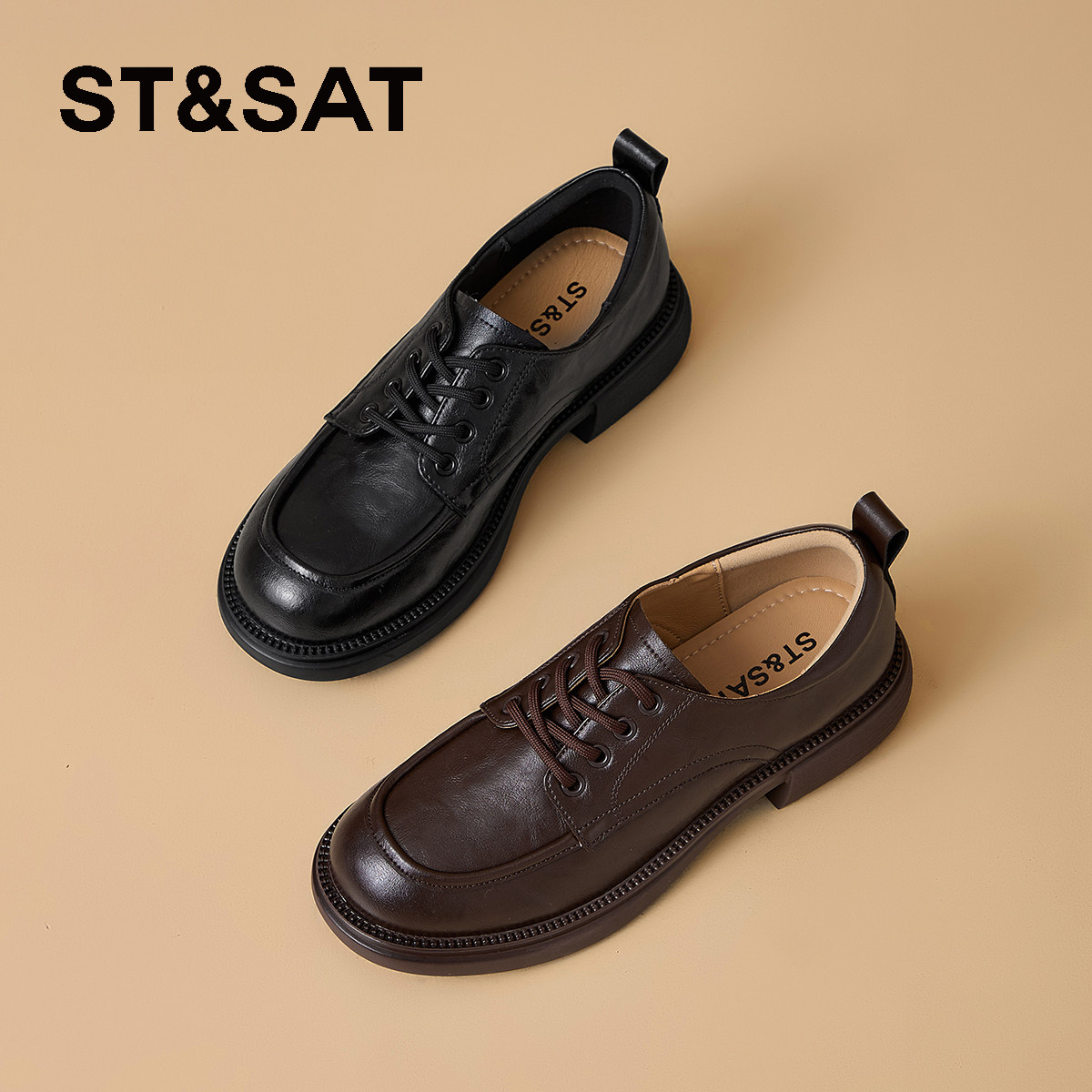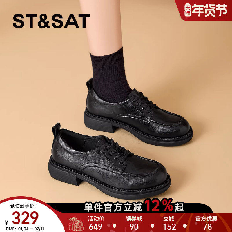 星期六厚底系带乐福鞋子春秋冬季新款英伦增高通勤黑色小皮鞋女款