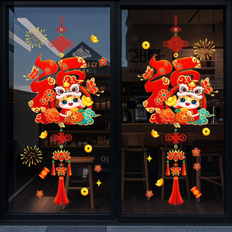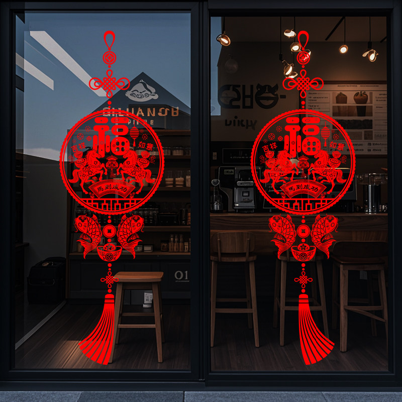 2026新年窗花马年装饰新款玻璃门贴纸静电橱窗贴春节氛围布置贴画