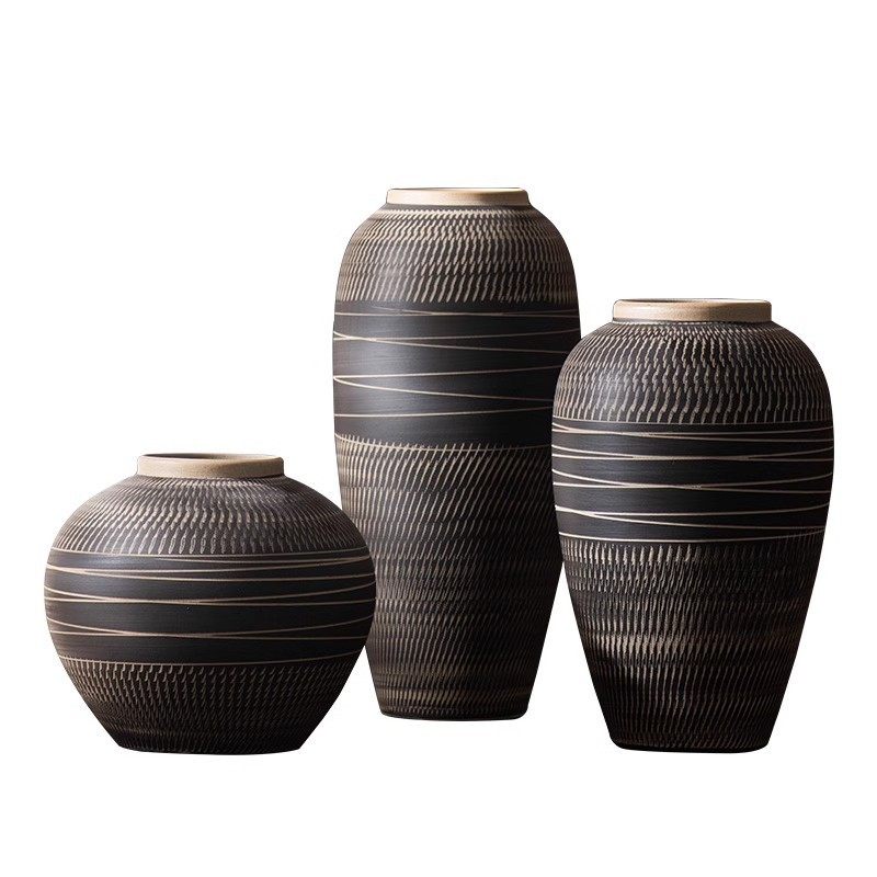 景德镇雕刻螺纹花瓶新中式手工艺品客厅酒店鞋柜摆件创意花器摆件