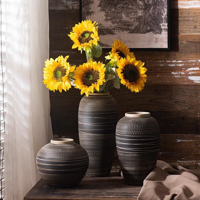 简约现代中古小众玻璃花瓶黑色水养鲜花客厅创意高级装饰插花摆件