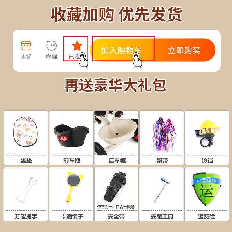 凤凰儿童三轮车大号宝宝婴儿手推车1-3-6岁2轻便脚踏车遛娃自行车