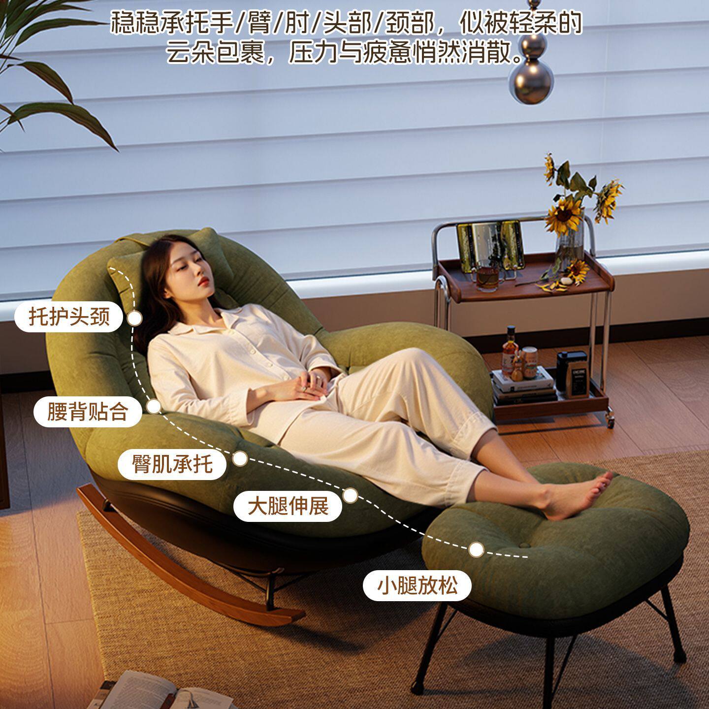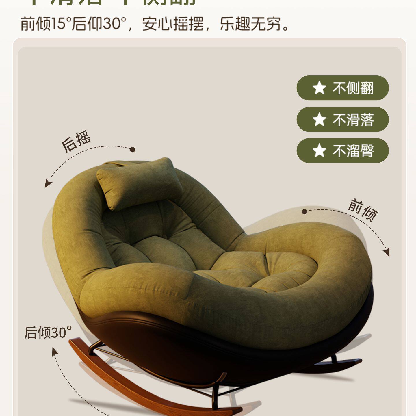 网红摇摇椅单人躺椅成人大人可睡觉懒人沙发客厅阳台家用休闲椅子