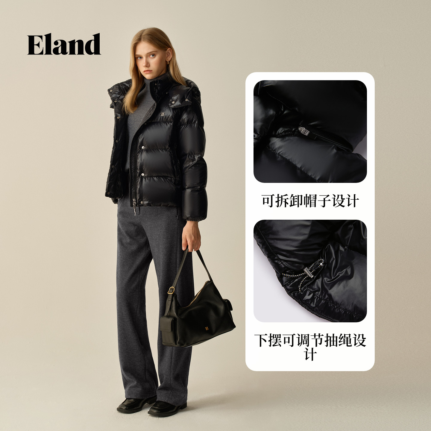 【防泼水&鹅绒】Eland衣恋羽绒服女龟背加厚短款外套2025冬季新款