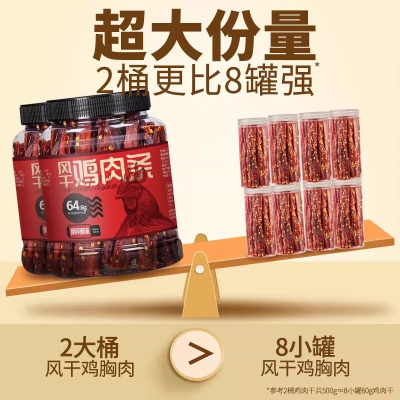 风干鸡肉干鸡胸肉条麻辣大桶低减卡肥脂期解馋健身代餐官方旗舰店