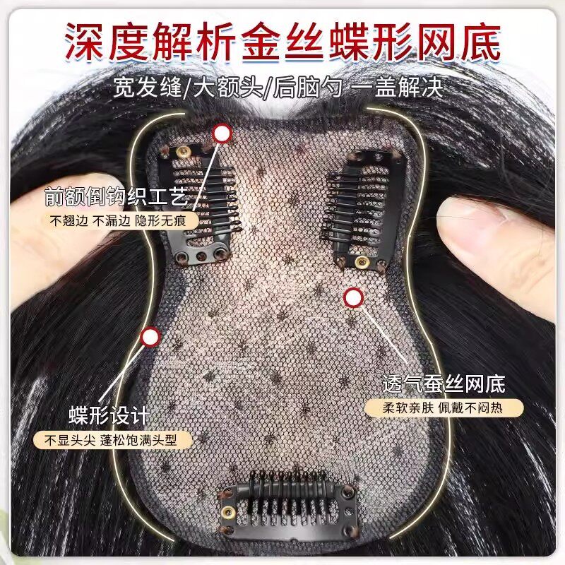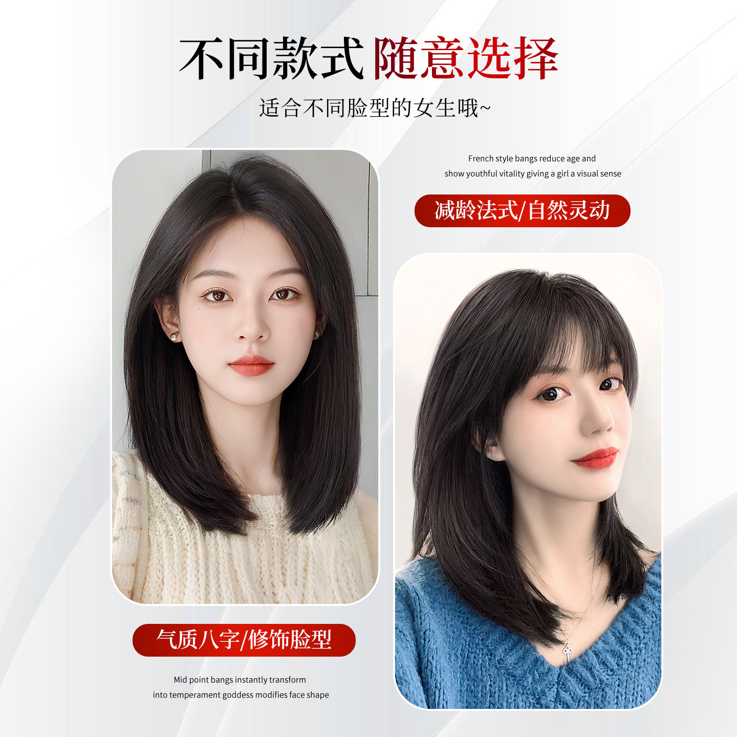 刘海假发女片头顶补发真发遮白发高颅顶量无痕假刘海前额发际线