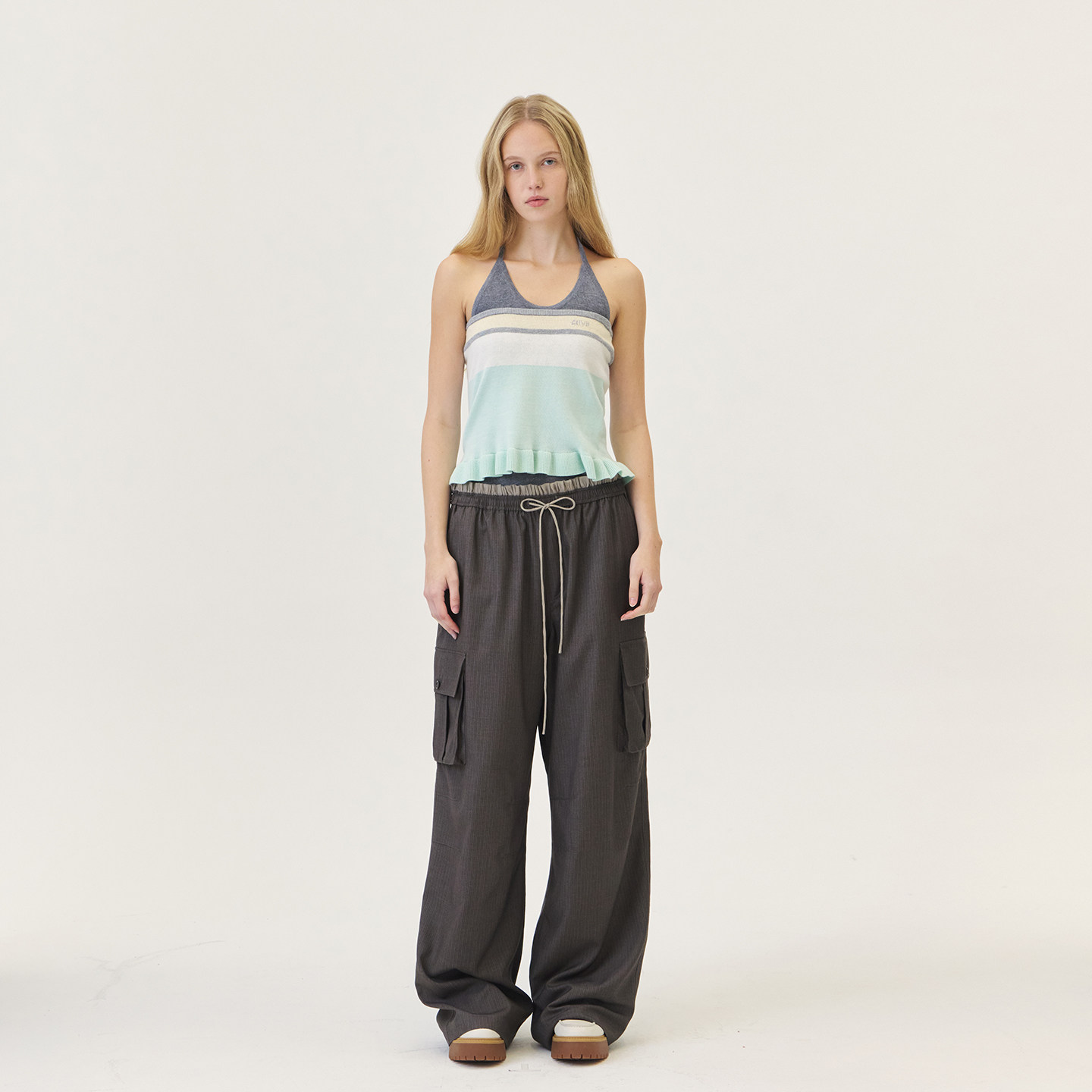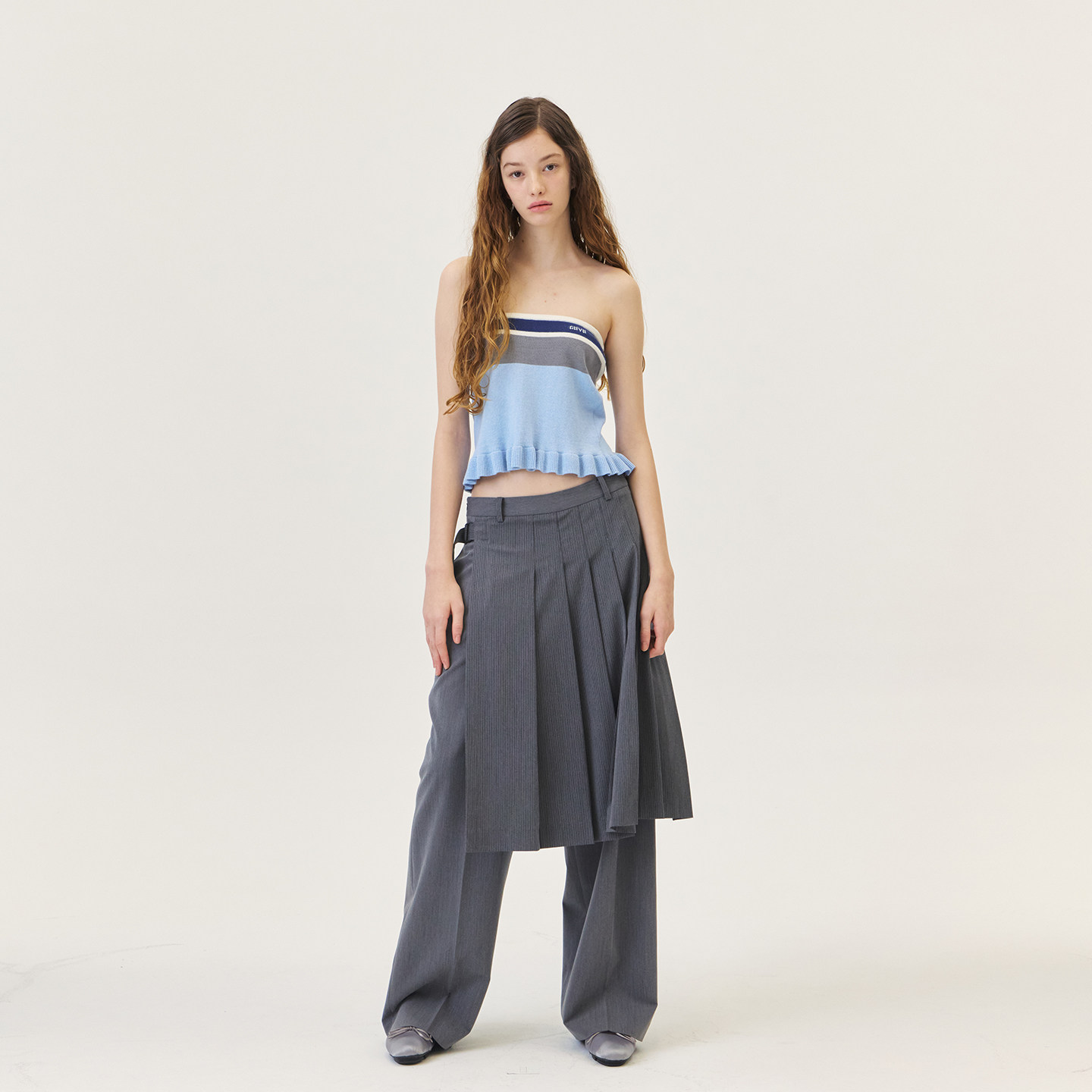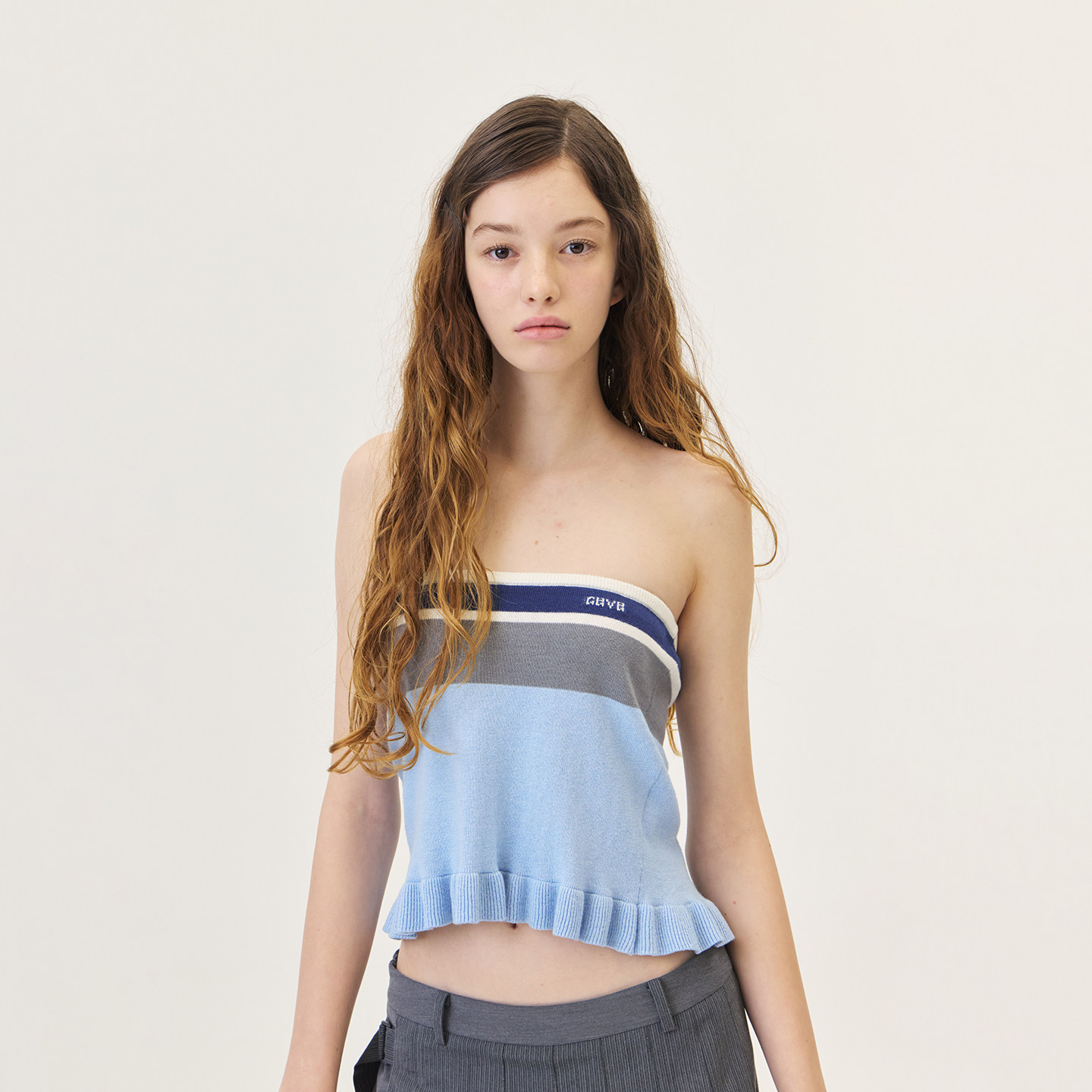 GROVE官方旗舰店2026PS春季新款条纹针织抹胸下摆花边 GP26KNC26