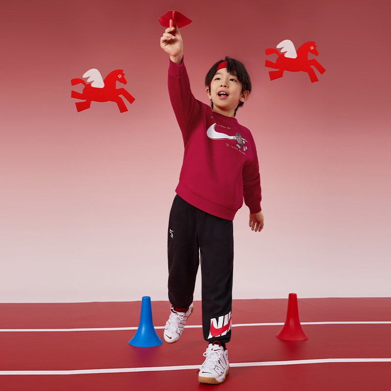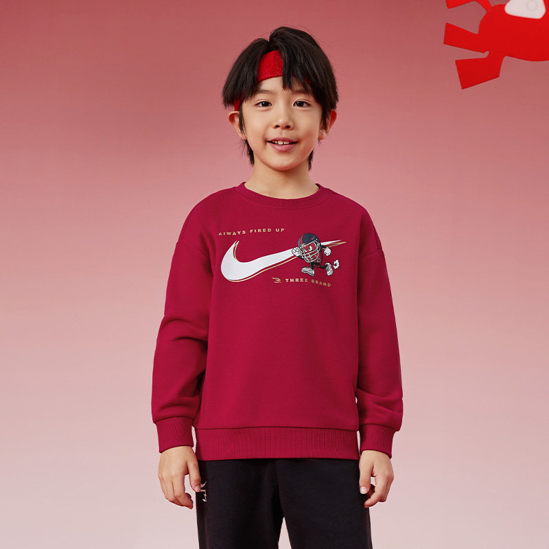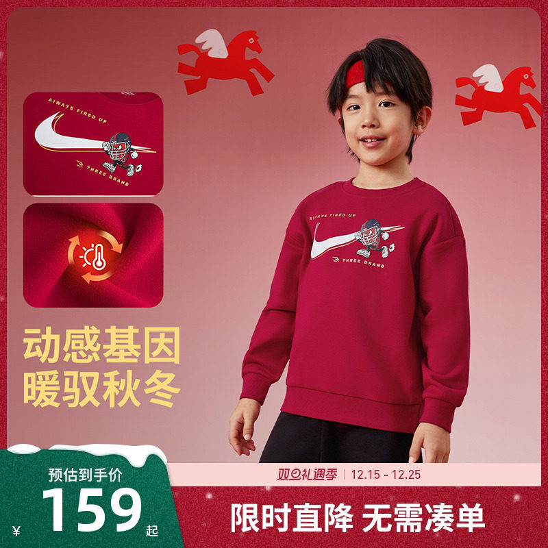 Nike 3brand儿童红色加绒卫衣冬季新款男童女童长袖运动N32542198
