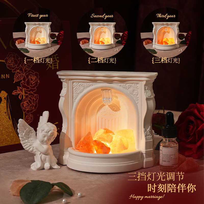 法式壁炉水晶石香薰摆件精油无火婚庆香氛扩香石氛围灯伴手礼新婚
